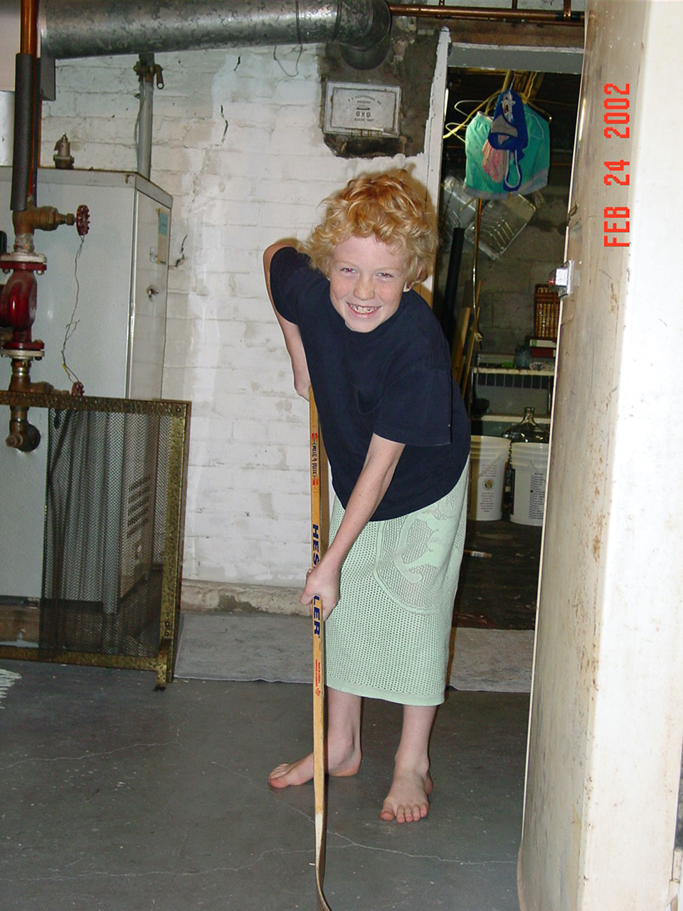 zach playing hockey in basement