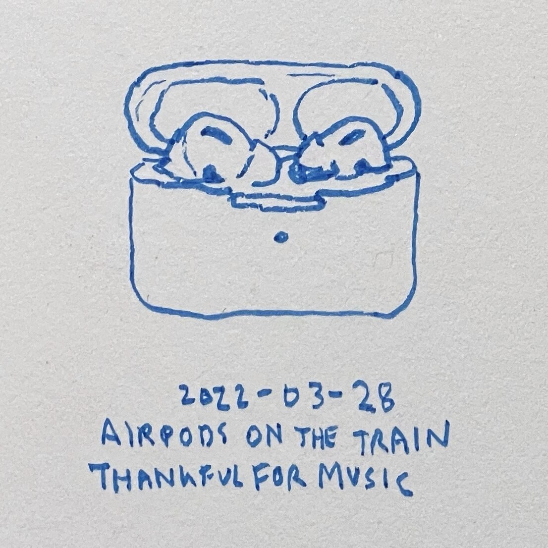 A quick sketch of my AirPods I did on the GO train. Having to deal with a shaky pen and shaky sketchbook is sometimes kinda fun. Sometimes not. Either way I was definitely enjoying listening to some music.