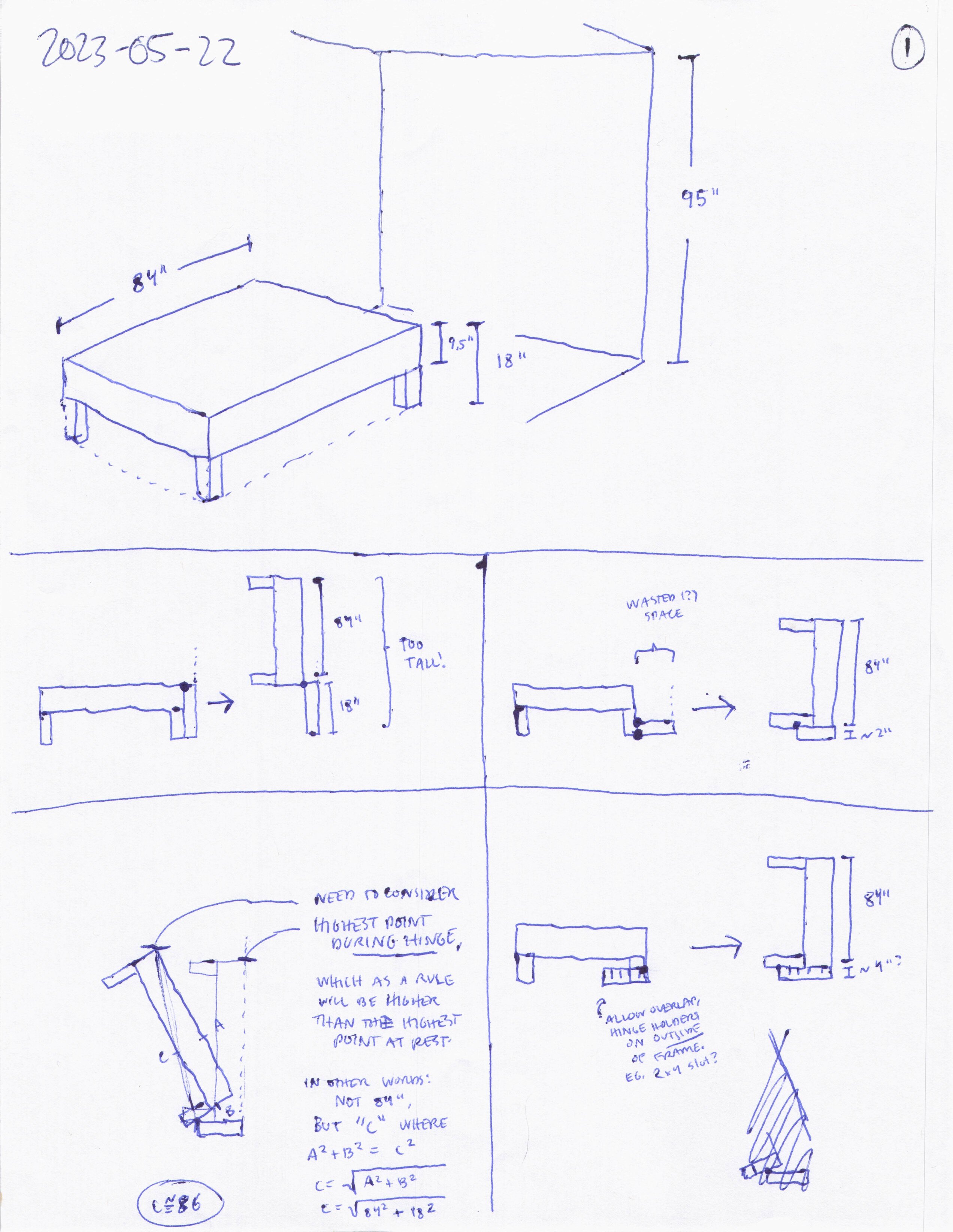 diy murphy bed sketch